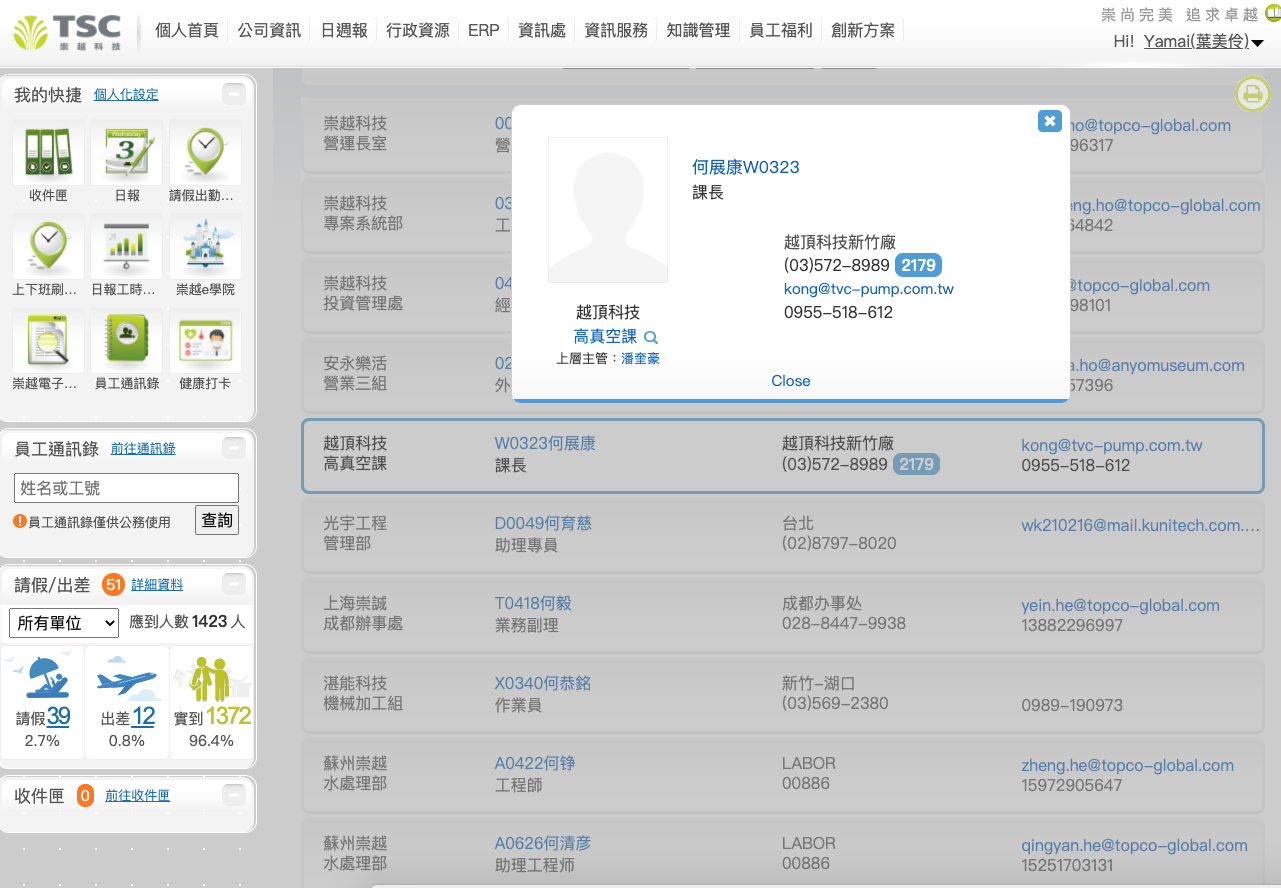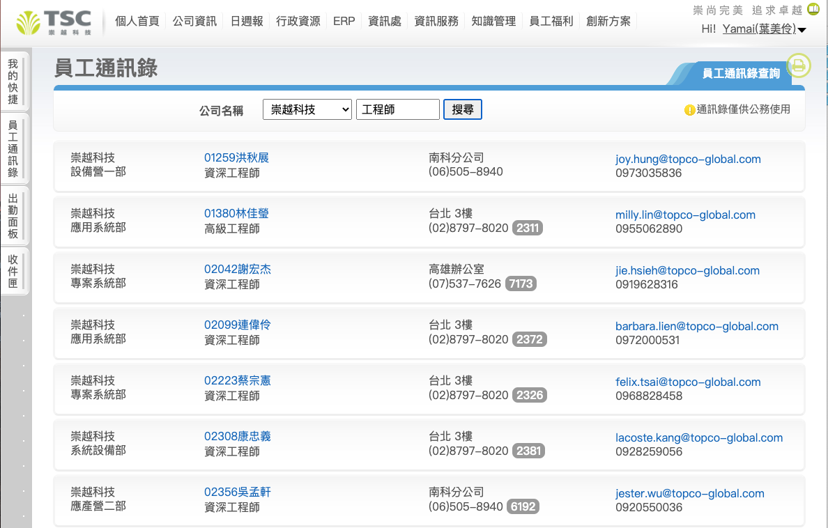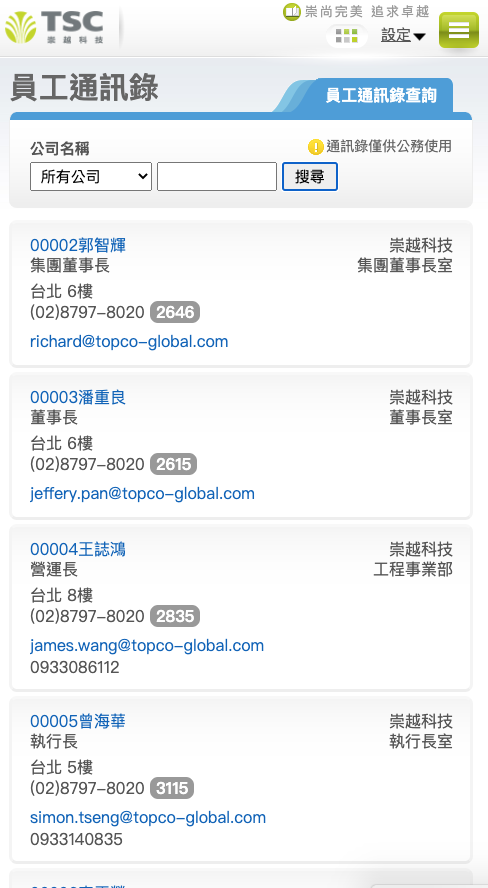 2. 員工通訊錄現已可支援各項裝置(不同大小螢幕如平板、手機)。