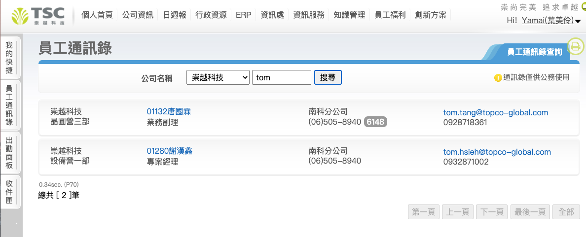 也可搜尋電子信箱(英文名)。