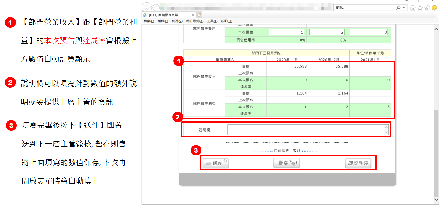 每月20號會發送當月業績預估表單(需填寫下三個月之資料), 次月1號回收未填寫表單,