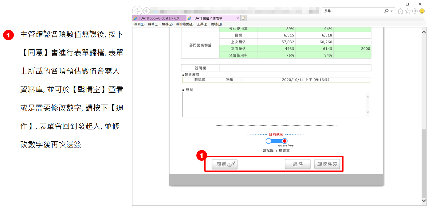 各位主管在EIP收件匣收到的表單會如圖, 請按照圖片填寫