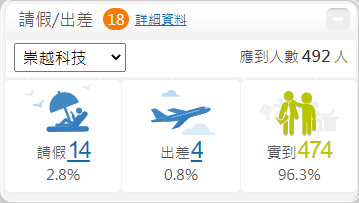 怎麼打電話不接,寄email也不回呢,真是急死人了 您是否常常碰到以上狀況,甚至懷疑對方今天是否不在公司? 有了【出勤面板】,讓您一覽今日公司同仁出缺勤狀況!