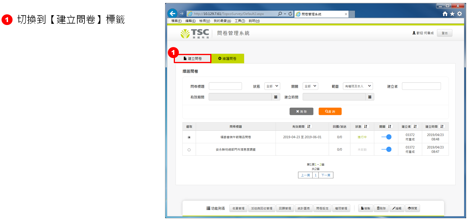 切換到【建立問卷】標籤