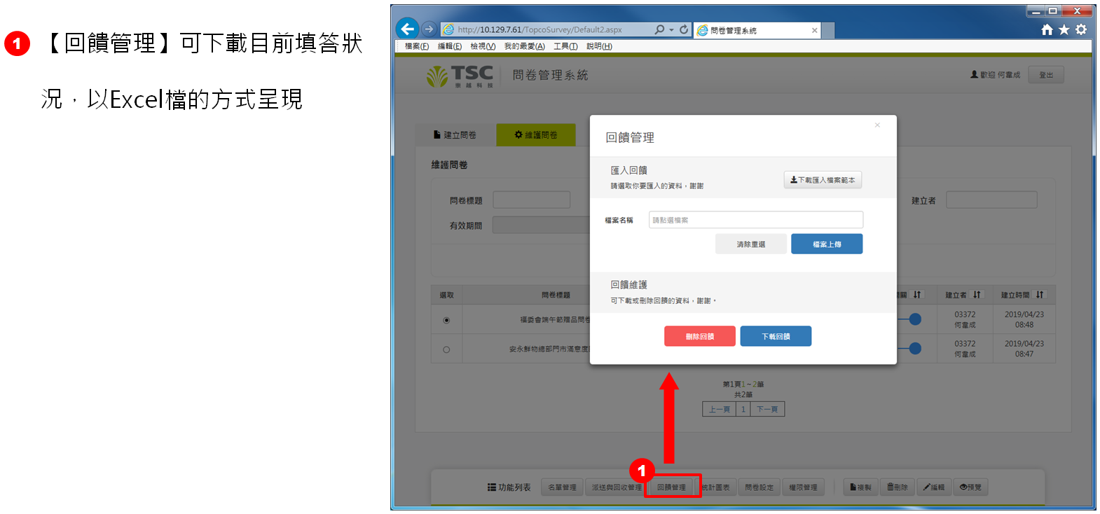 【回饋管理】可下載目前填答狀況,以 Excel 檔的方式呈現